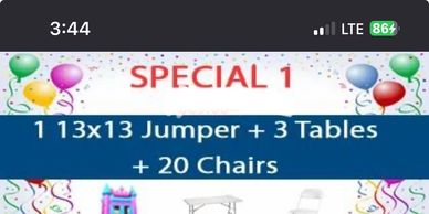 We offer party packages that include everything you need for a successful event. Our packages include tents, tables, chairs, inflatables, and food and beverage rentals. We can also customize a package to fit your specific needs and budget.